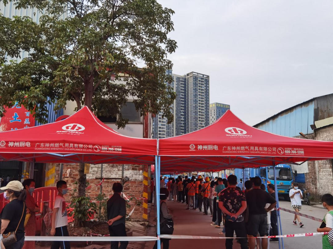本輪防控形勢(shì)嚴(yán)峻,全市中小學(xué)生暫停回校上課,防控工作人員爭(zhēng)分奪秒與生命賽跑,全民鋪開檢測(cè)核酸防疫工作,神州廚電迅速響應(yīng)疫情防控要求,立馬把帳篷物資送到“疫”線,為市民提供服務(wù)。