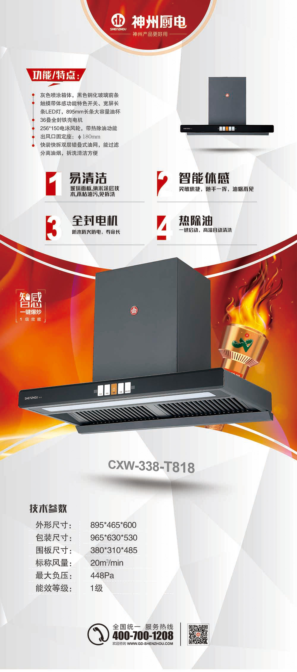 2、觸摸帶體感功能特色開關(guān)、寬屏長條LED冷光燈,895mm長條大容量油杯