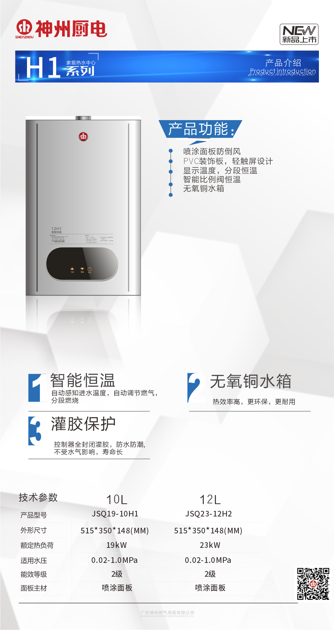 1、噴涂面板防倒風 2、PVC裝飾板,輕觸屏設計 3、顯示溫度,分段恒溫 4、智能比例閥恒溫 5、無氧銅水箱" />