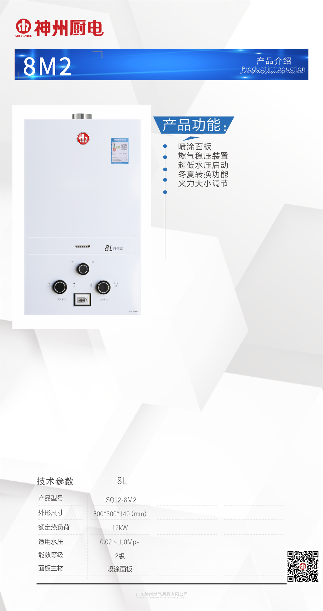1、噴涂面板 2、燃氣穩壓裝置 3、超低水壓啟動 4、冬夏轉換功能 5、火力大小調節" />